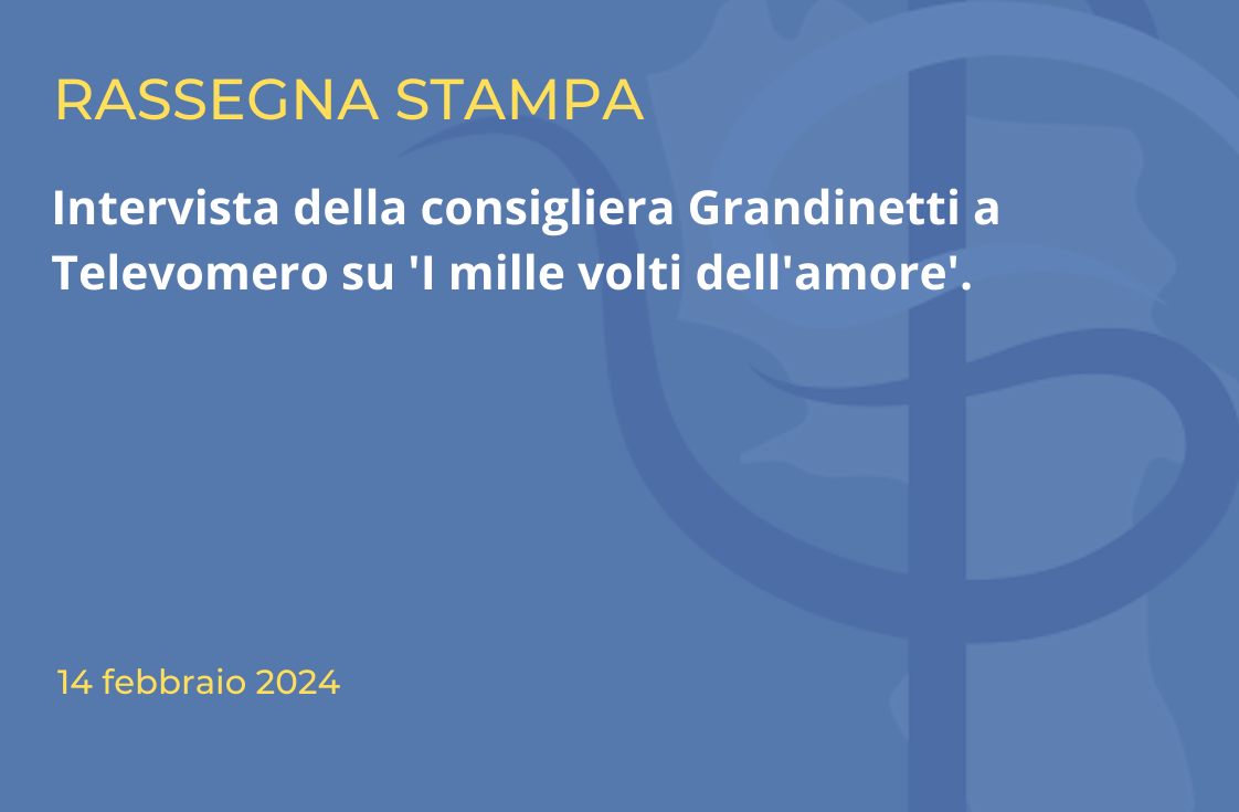 Intervista della consigliera Grandinetti a Televomero su ‘I mille volti dell’amore’ Scarica le leggi la rassegna stampa Allegati 24-2-14 INTERVISTA GRANDINETTI A TELEVOMERO SU MILLE VOLTI DELL'AMORE (189 kB)RASSEGNA STAMPA - 9 novembre (17) (97 kB)
