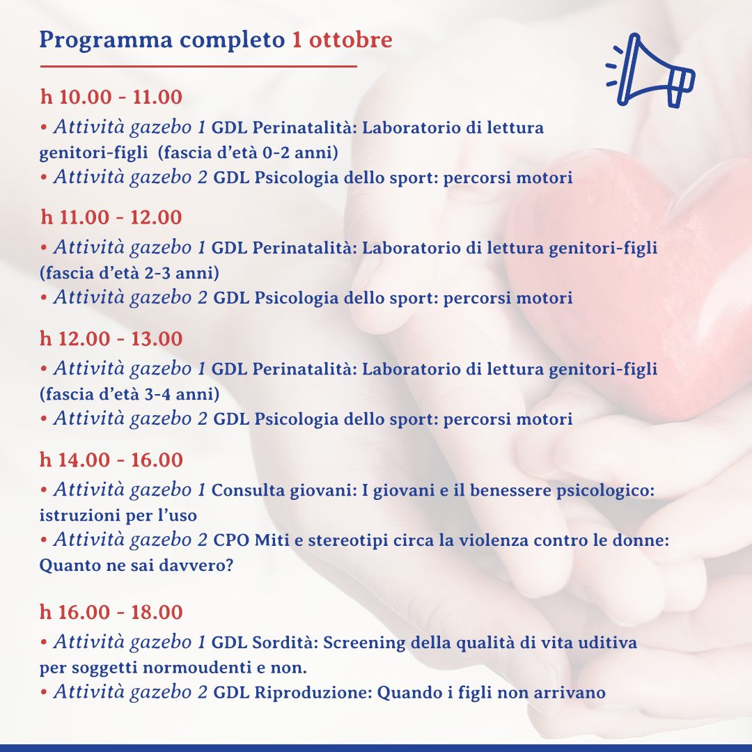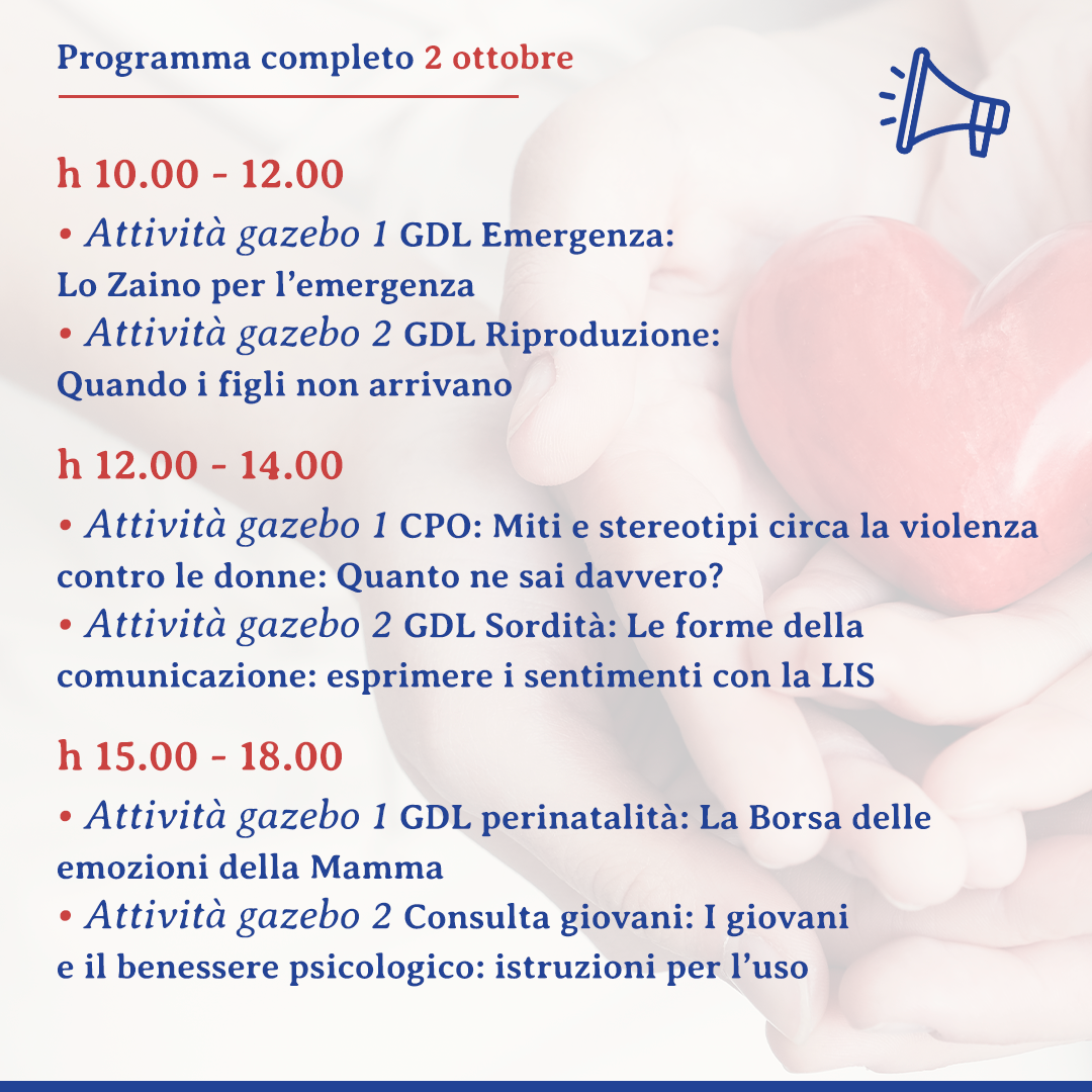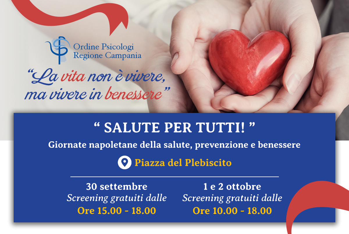 A causa delle avverse condizioni meteo, l’evento “Salute per tutti – Le Giornate napoletane della salute, prevenzione e benessere” si svolgerà esclusivamente nelle giornate 1 e 2 ottobre dalle ore 10:00 alle ore 18:00.