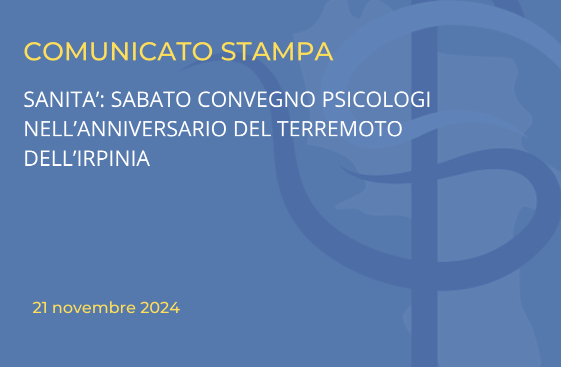 SANITA’: SABATO CONVEGNO PSICOLOGI NELL’ANNIVERSARIO DEL TERREMOTO DELL’IRPINIA