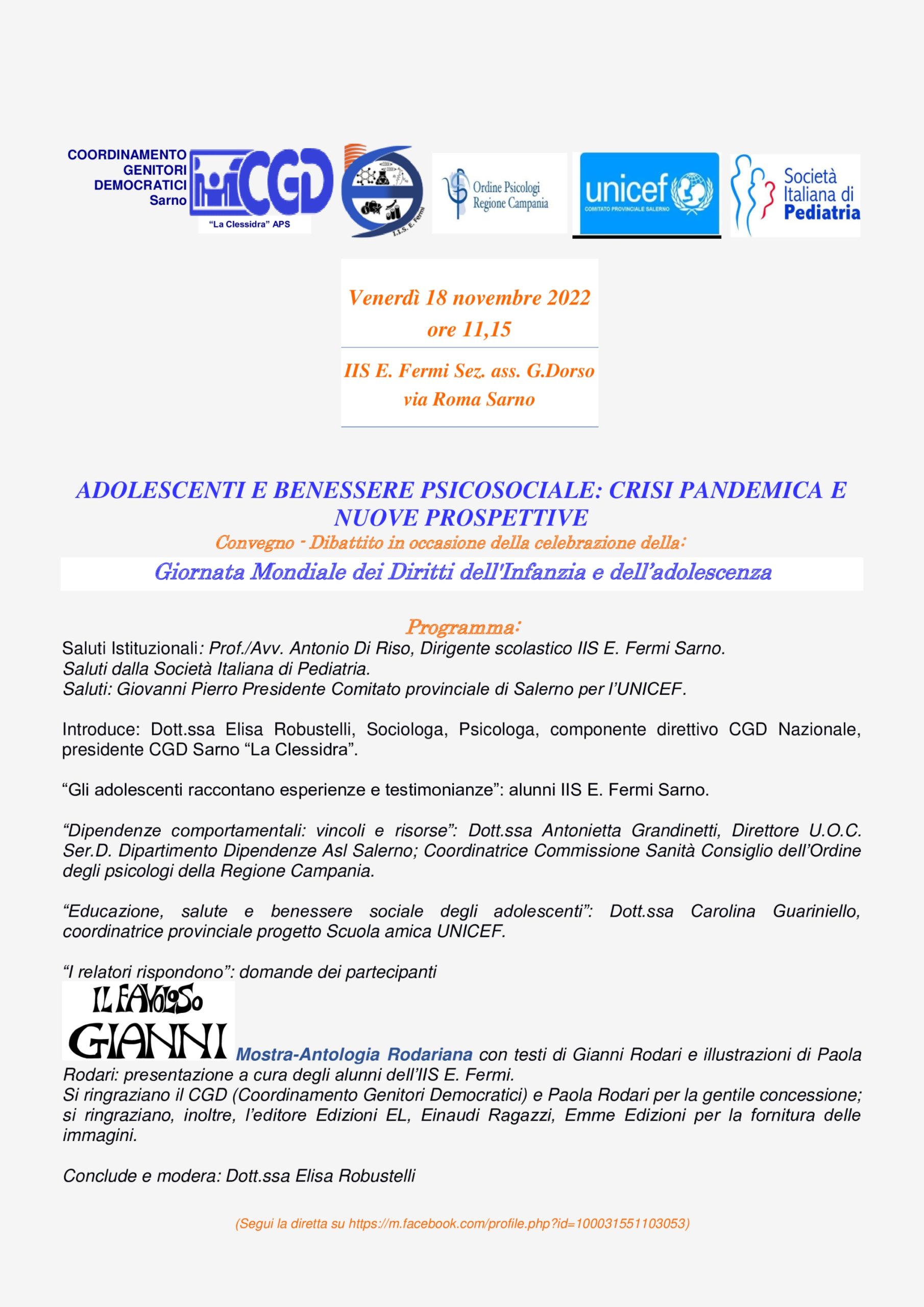 Convegno “Adolescenti e benessere psicosociale. Crisi pandemica e nuove prospettive”