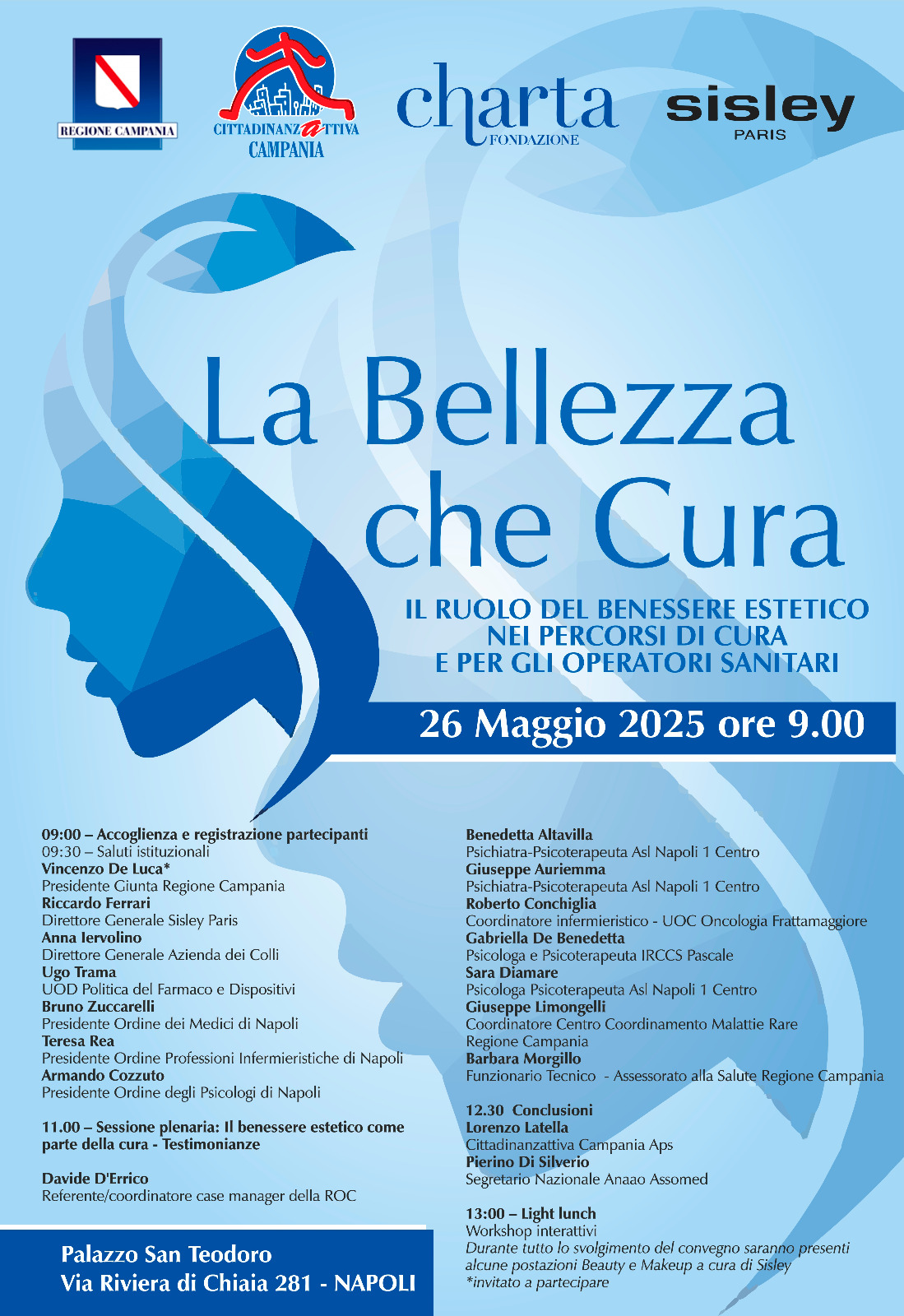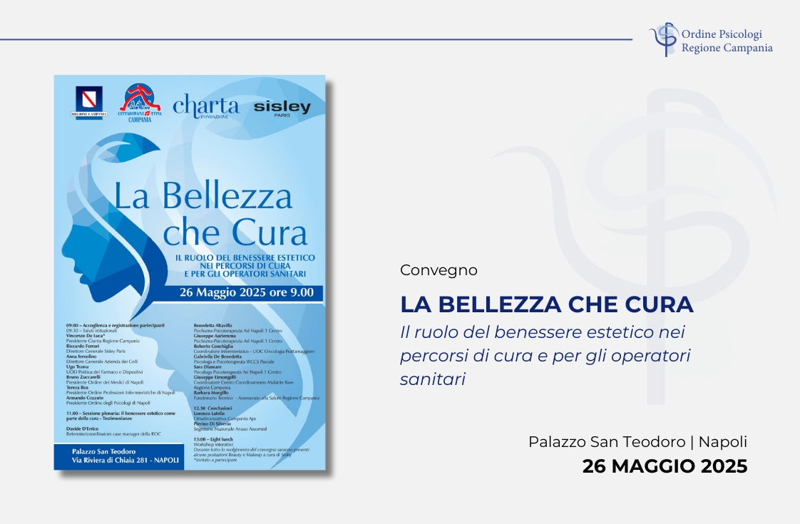 Lunedì 26 maggio 2025, a partire dalle ore 09:00, si terrà presso Palazzo San Teodoro a Napoli, il Convegno dal titolo: “La bellezza che cura. Il ruolo del benessere estetico nei percorsi di cura e per gli operatori sanitari“.