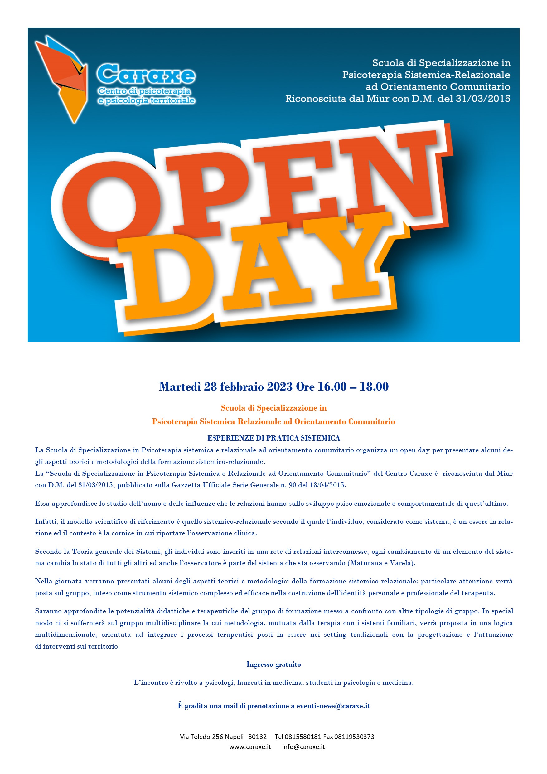 OPEN DAY – Scuola di Specializzazione in Psicoterapia Sistemica Relazionale ad Orientamento Comunitario