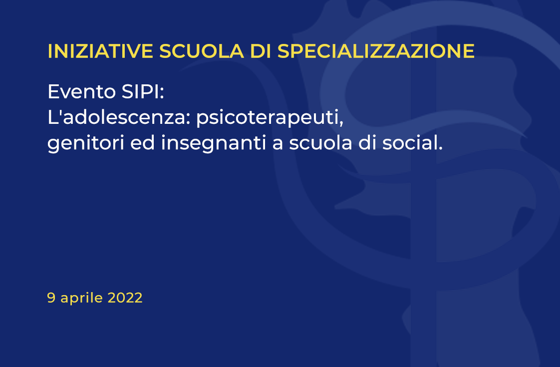 La SIPI è lieta di comunicare che in data Sabato 9 Aprile 2022 si terrà l’evento: “L’adolescenza: psicoterapeuti, genitori ed insegnanti a scuola di social.”