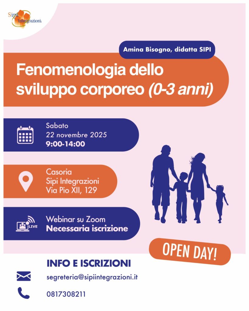 Sabato 22 novembre 2025, dalle 9:00 alle 14:00, si terrà a Casoria (Via Pio XII, 129) l’Open Day della Scuola di Specializzazione Sipi Integrazioni, dedicato alla fenomenologia dello sviluppo corporeo nella prima infanzia.