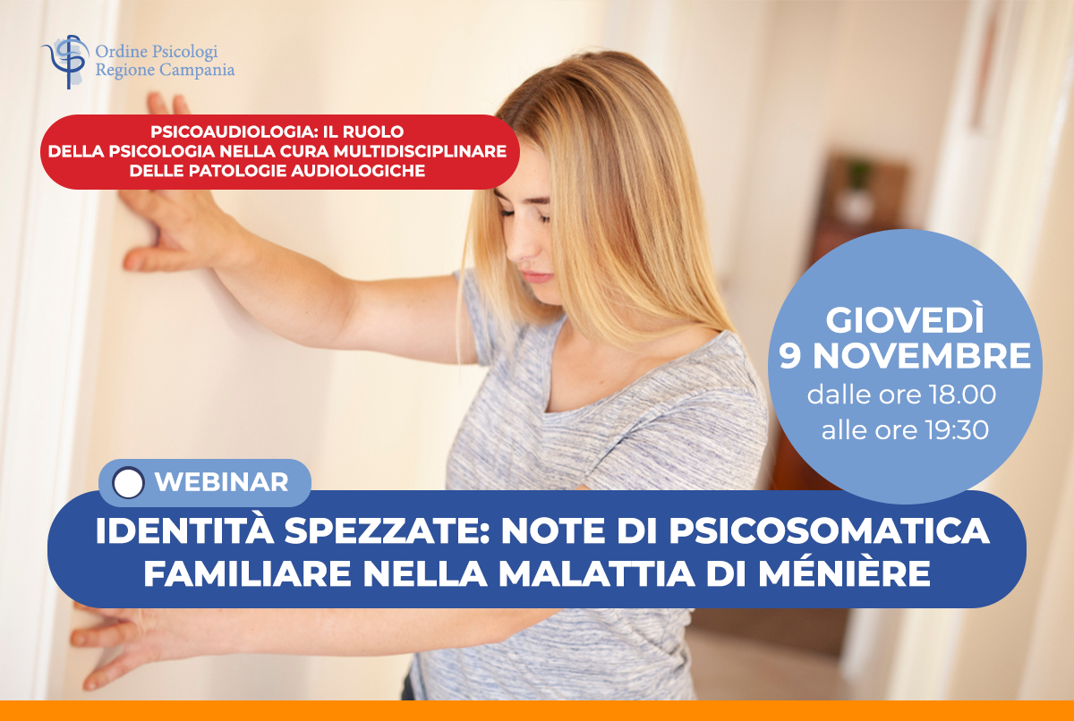 Il webinar, inserito nel ciclo “PSICOAUDIOLOGIA: IL RUOLO DELLA PSICOLOGIA NELLA CURA MULTIDISCIPLINARE DELLE PATOLOGIE AUDIOLOGICHE” è promosso dal gruppo di Lavoro sulla Psicoaudiologia dell’Ordine Psicologi Regione Campania.