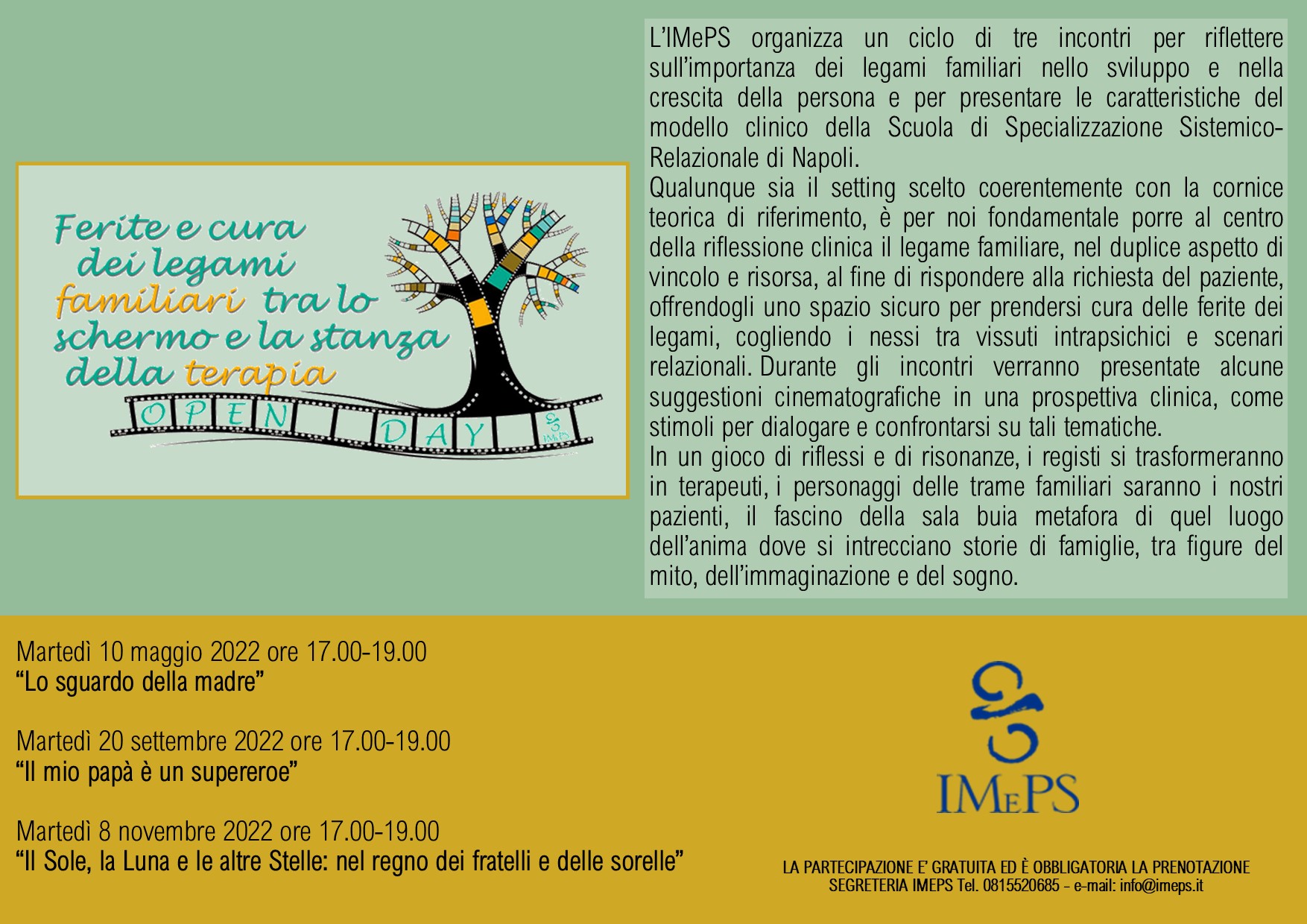IMePS (Istituto di Medicina e Psicologia Sistemica)-“OPEN-DAY, Ferite e cura dei legami familiari tra lo schermo e la stanza della terapia”