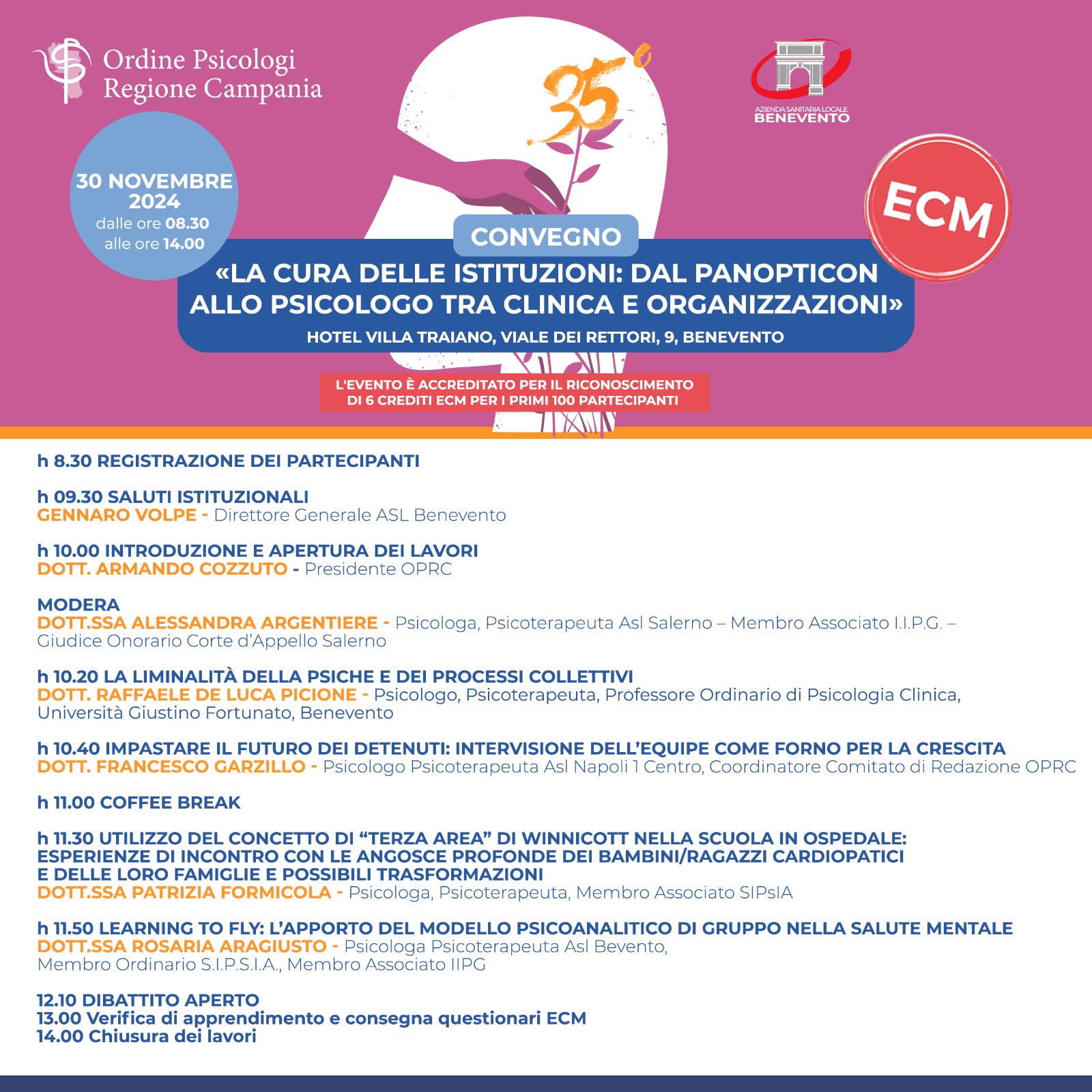 30 Novembre – Hotel Villa Traiano, Viale dei Rettori, 9, 82100 Benevento BN