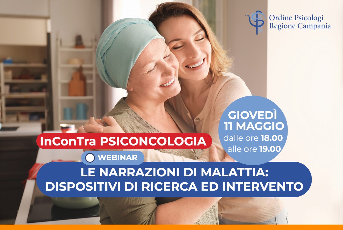 Il webinar, il secondo della seconda edizione del ciclo di webinar IN/CON/TRA PSICONCOLOGIA: ciclo di INcontri, CONfronti e TRAsFORMAZIONE, è promosso dal gruppo di Lavoro Psico-Oncologia dell’Ordine Psicologi Regione Campania.