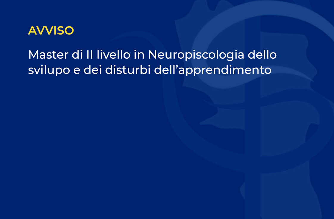 MASTER DI II LIVELLO IN NEUROPSICOLOGIA DELLO SVILUPPO E DEI DISTURBI DELL’APPRENDIMENTO (Edizione 9, aa. 2022-2023)