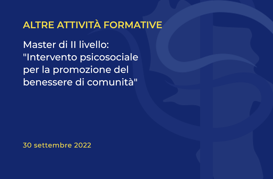 Master di II livello: “Intervento psicosociale per la promozione del benessere di comunità”