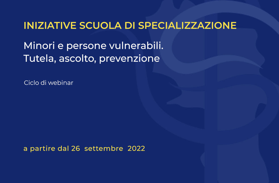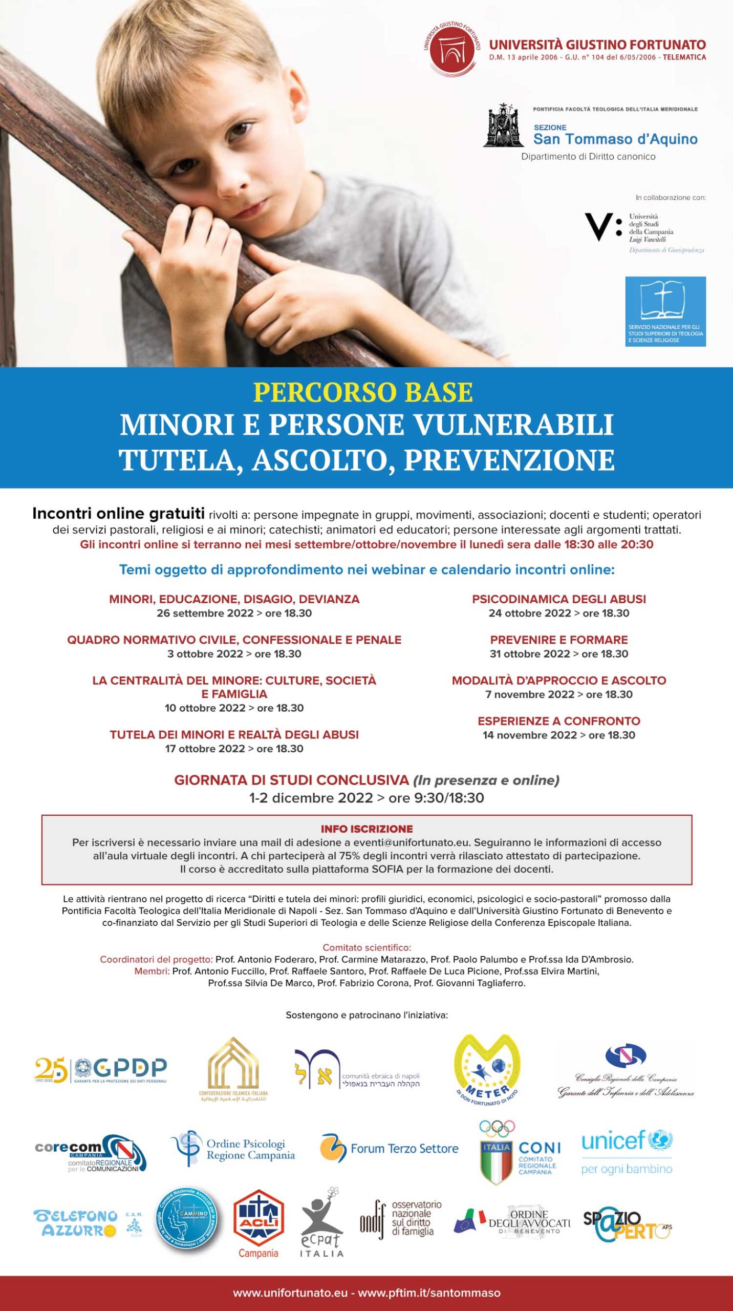 Percorso di formazione “Minori e persone vulnerabili. Tutela, ascolto, prevenzione”, organizzato dalla PFTIM e dall’Università Giustino Fortunato, in collaborazione con l’Università degli Studi della Campania Luigi Vanvitelli e con il Servizio Nazionale per gli Studi Superiori di Teologia e Scienze Religiose della Conferenza Episcopale Italiana.