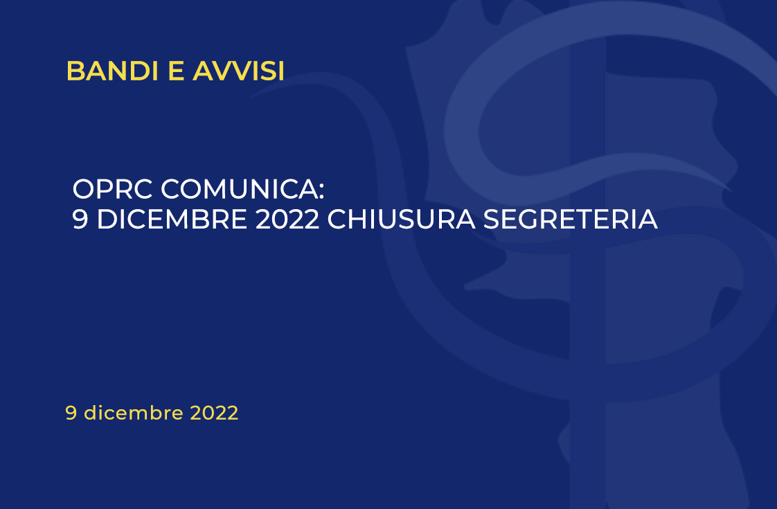 OPRC COMUNICA: 9 DICEMBRE 2022 CHIUSURA SEGRETERIA