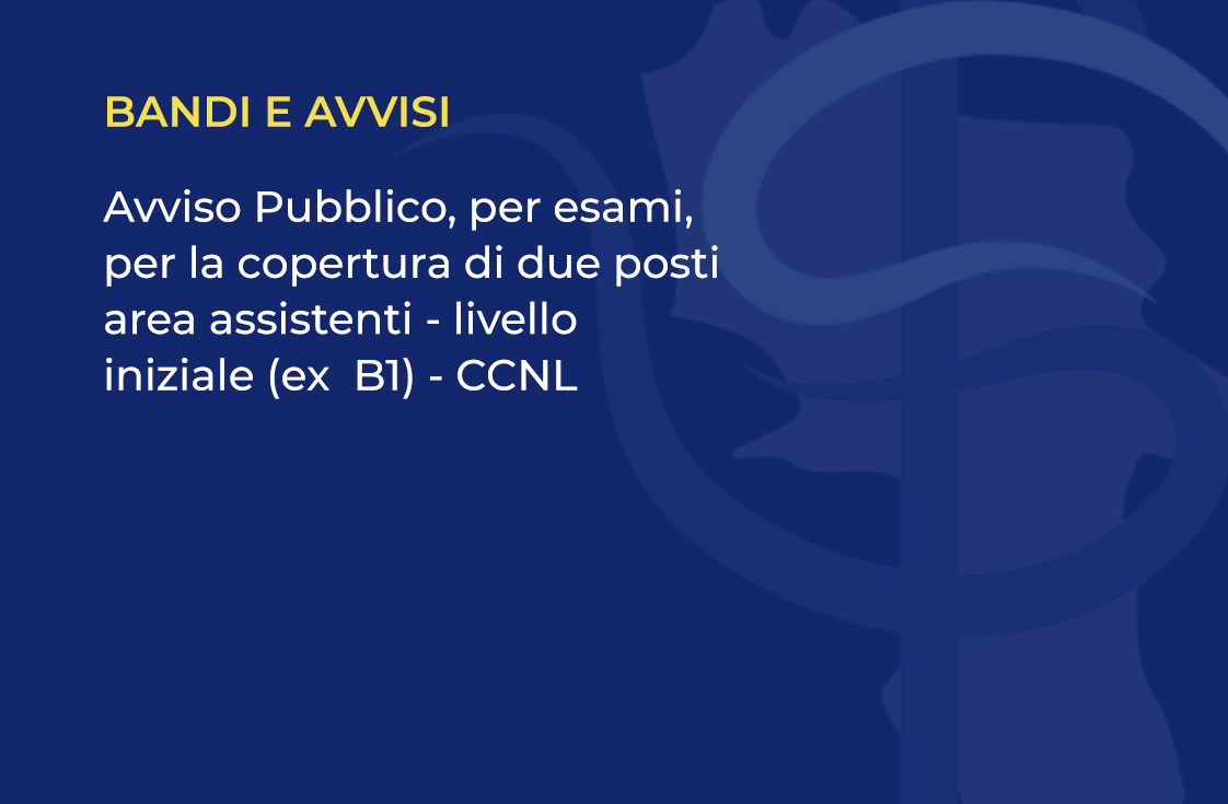 Avviso Pubblico, per esami, per la copertura di due posti area assistenti – livello iniziale (ex B1) – CCNL relativo al personale non dirigente del comparto Funzioni Centrali triennio 2019-2021 – con contratti formazione e lavoro della durata di mesi 12.