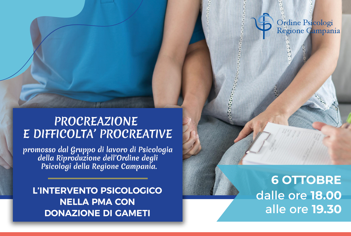 Dopo il webinar “SE I BAMBINI NON ARRIVANO: L’ESPERIENZA DELL’ INFERTILITÀ” ecco il secondo di un ciclo di webinar su Procreazione e Difficoltà Procreative promosso dal Gruppo di lavoro di Psicologia della Riproduzione dell’Ordine degli Psicologi della Regione Campania che approfondirà il tema relativo alla procreazione medicalmente assistita con donazione di gameti femminili e/o maschili, con particolare attenzione all’oncofertilità.