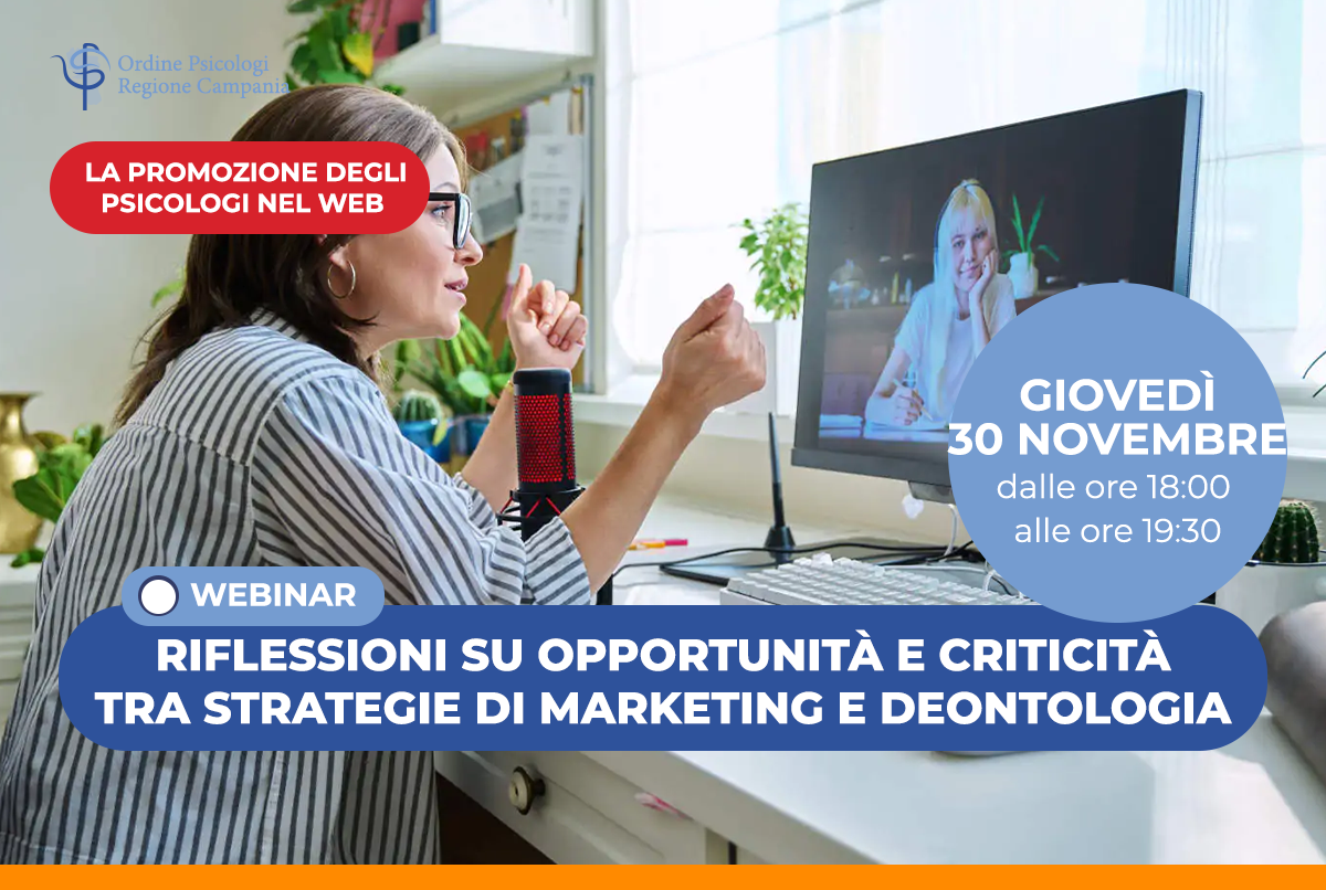 A partire dal lavoro svolto dall’Ordine degli Psicologi del Lazio, in particolare della Commissione Deontologica che ha redatto il “Vademecum Deontologico per l’auto-presentazione degli psicologi nel web”, il presente webinar intende avviare una riflessione che consenta ai colleghi di utilizzare questi spazi digitali a sostegno della propria professione, affinché i potenziali utenti trovino in tali spazi contenuti utili per le loro decisioni di cura e non suggestioni ed informazioni fuorvianti.