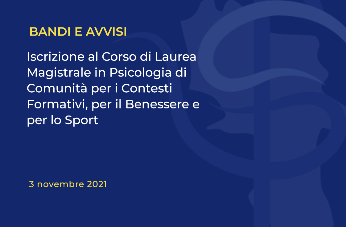 Si comunica la riapertura del bando per l’iscrizione al Corso di Laurea Magistrale in Psicologia di