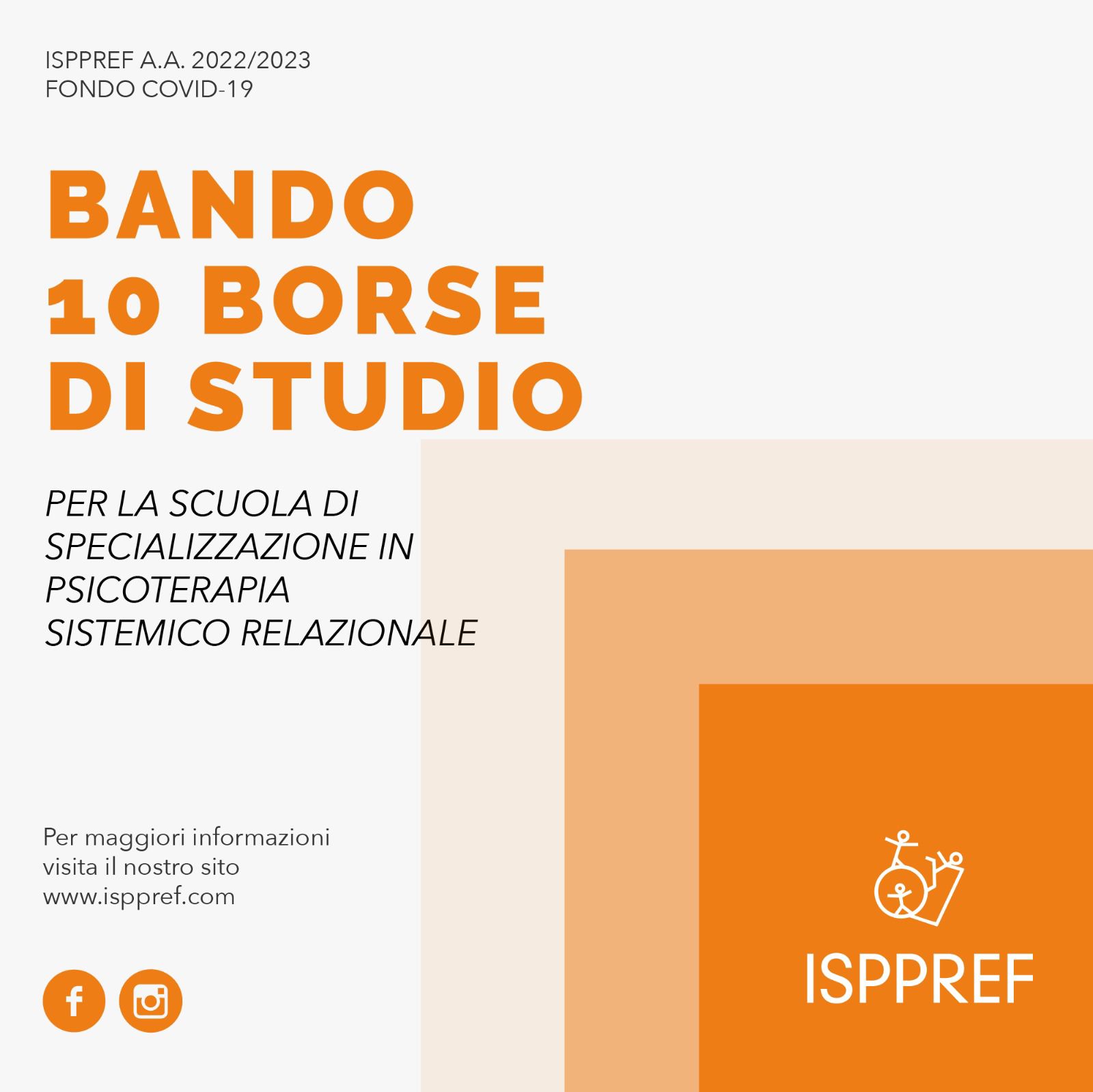 ISPPREF bando per l’attribuzione di 10 borse di studio per gli iscritti al primo anno nell’a.a. 2022/2023 alla scuola quadriennale di psicoterapia sistemico relazionale e familiare.