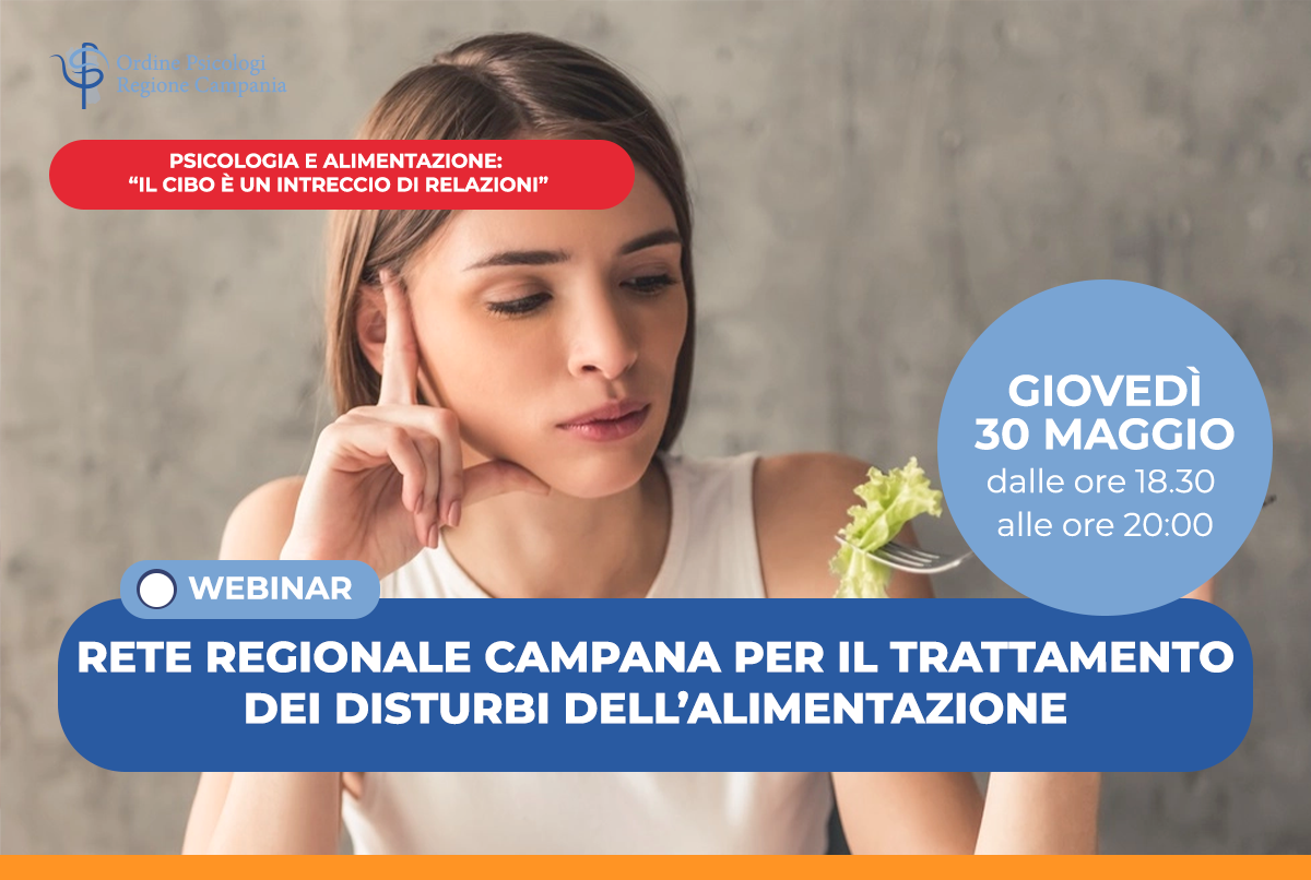 Nel sesto ed ultimo webinar della prima edizione del ciclo di webinar formativi sul tema Psicologia e Alimentazione, sarà presentata la Rete Regionale Campana per il trattamento dei Disturbi dell’Alimentazione.