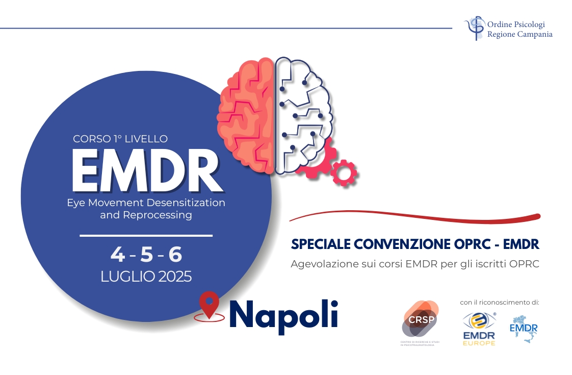 A seguito delle edizioni scorse andate tutte Sold Out, OPRC e il Centro di Ricerche e Studi in Psicotraumatologia firmano una nuova convenzione per gli iscritti all’Ordine degli Psicologi della Regione Campania, utile all’accesso agevolato al CORSO di EMDR di Livello 1.