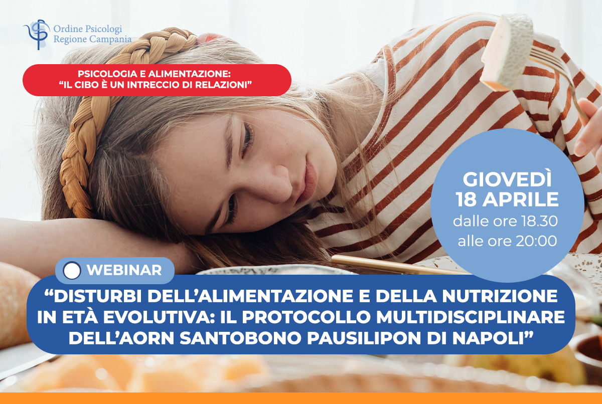TERZO WEBINAR: “PSICOLOGIA E ALIMENTAZIONE”- “Disturbi dell’Alimentazione e della Nutrizione in età evolutiva:il protocollo multidisciplinare dell’AORN Santobono Pausilipon di Napoli”