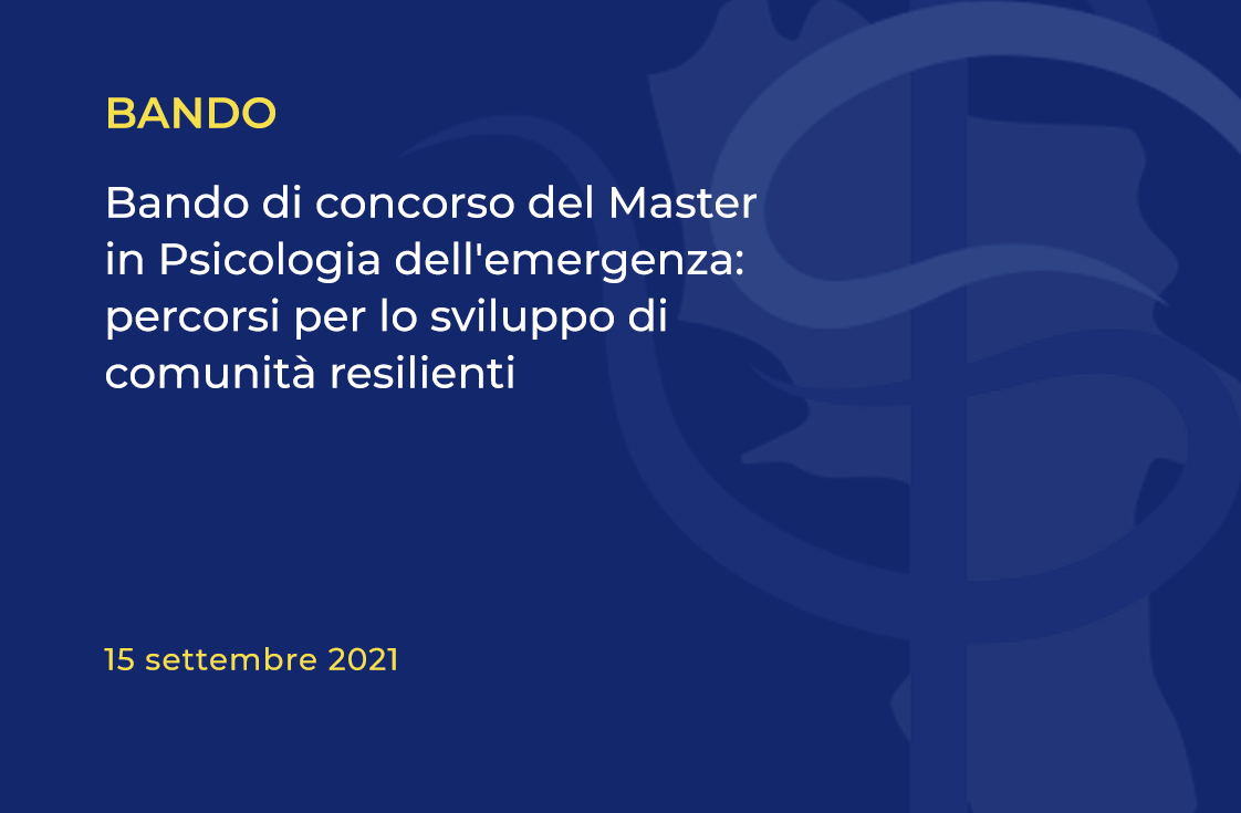 Bando di concorso del Master in Psicologia dell’emergenza: percorsi per lo sviluppo di comunità resilienti