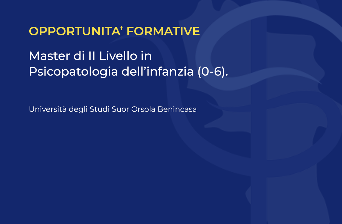 | L’Università degli Studi Suor Orsola Benincasa, per l’anno accademico 2021/2022, ha istituito il Master di II Livello in Psicopatologia dell’infanzia (0-6). Il Master è finalizzato alla specializzazione di esperti in grado di utilizzare competenze multidisciplinari in seno a team che operano a vario titolo in strutture pubbliche e private nel campo dei disturbi dello sviluppo dell’infanzia ad esordio 0-6 anni. Nell’ambito del Master è prevista un’area comune e due aree specialistiche, una per gli psicologi ed una per i professionisti dell’educazione. Tali differenziazione sarà menzionata nel diploma di master. Il Master si svolgerà in modalità integralmente digitale, con lezione sincrone che verranno registrate e saranno rese fruibili agli iscritti in qualsiasi momento. Per gli iscritti all’Ordine degli Psicologi di tutto il territorio nazionale, la quota di partecipazione al Master è ridotta ad € 1.000,00 + tassa per il diritto allo studio invece di € 1.800,00 + tassa per il diritto allo studio. Il bando è disponibile al seguente link: https://www.unisob.na.it/universita/dopolaurea/master/psicopatologiainfanzia/bando.htm?vr=1 |