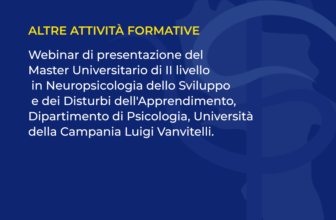 Webinar di presentazione del Master Universitario di II livello in Neuropsicologia dello Sviluppo e dei Disturbi dell’Apprendimento, Dipartimento di Psicologia, Università della Campania Luigi Vanvitelli.