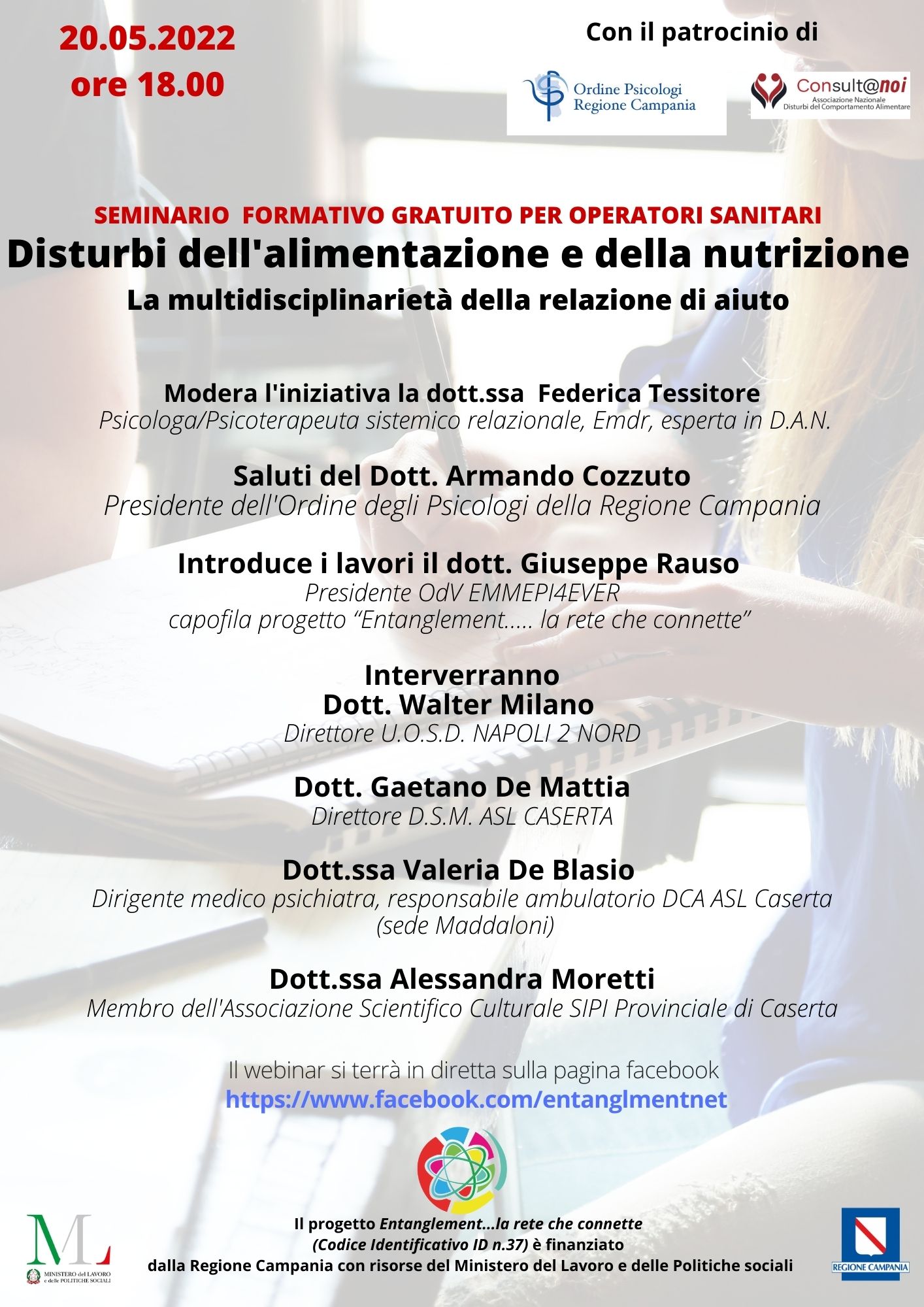 Il webinar si terrà in diretta sulla pagina facebook: https://www.facebook.com/entanglment