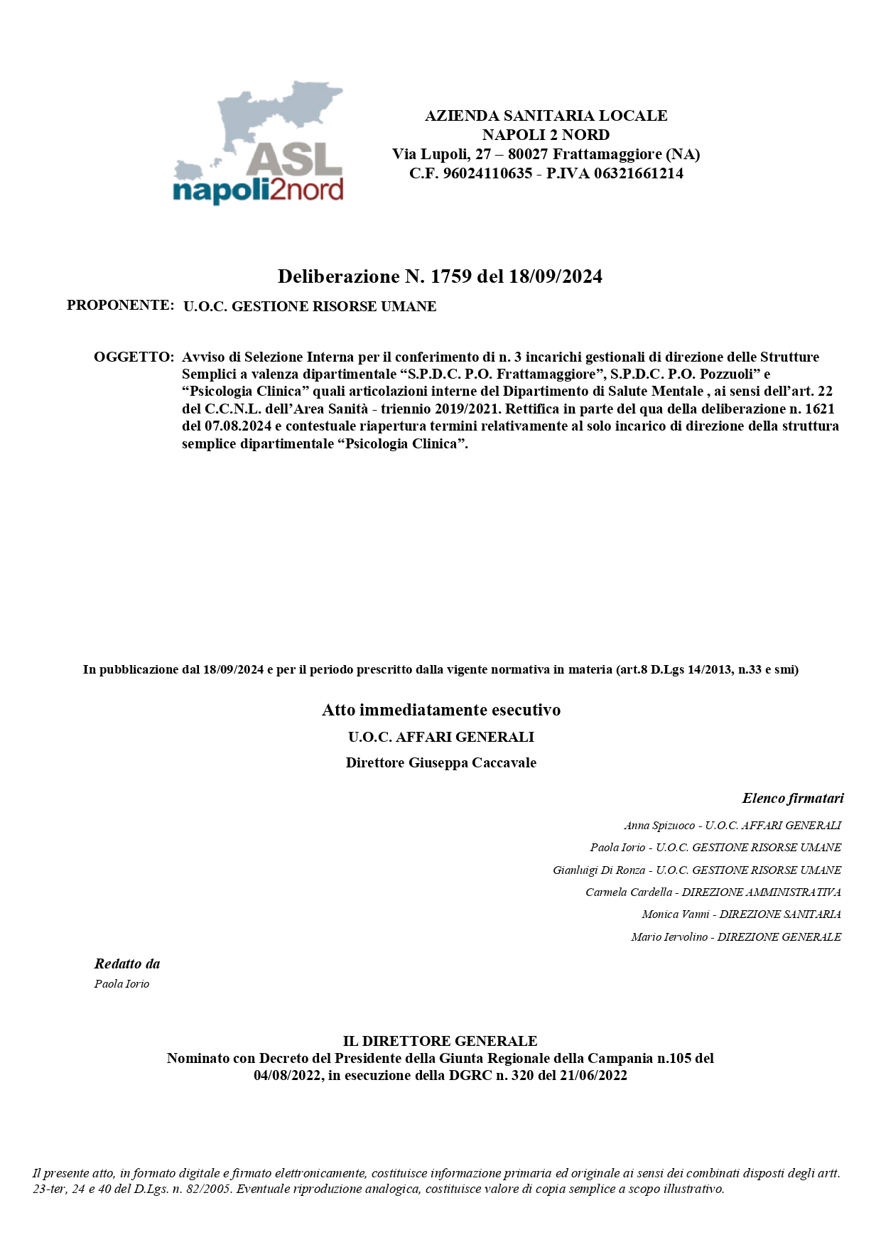 Di seguito il link alla nuova delibera (N. 1759 del 18/09/2024) con l’avviso completo, i requisiti richiesti ed i termini di scadenza: https://aslnapoli2nord.portaleamministrazionetrasparente….