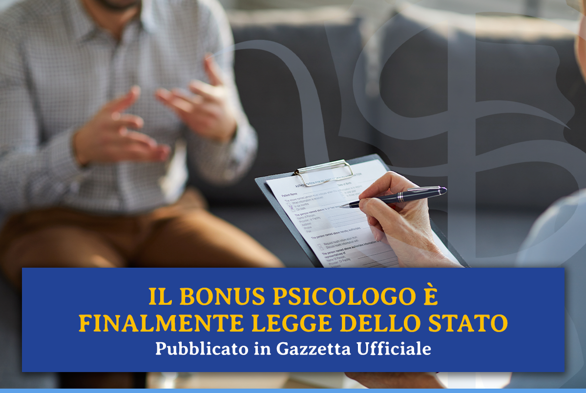 il cd “Bonus Psicologo” è stato pubblicato oggi in Gazzetta Ufficiale.