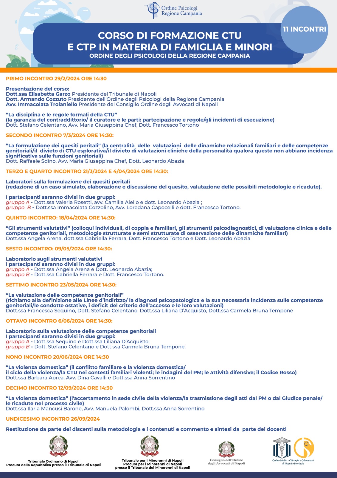 In allegato il programma aggiornato del Corso, prima edizione 2024.