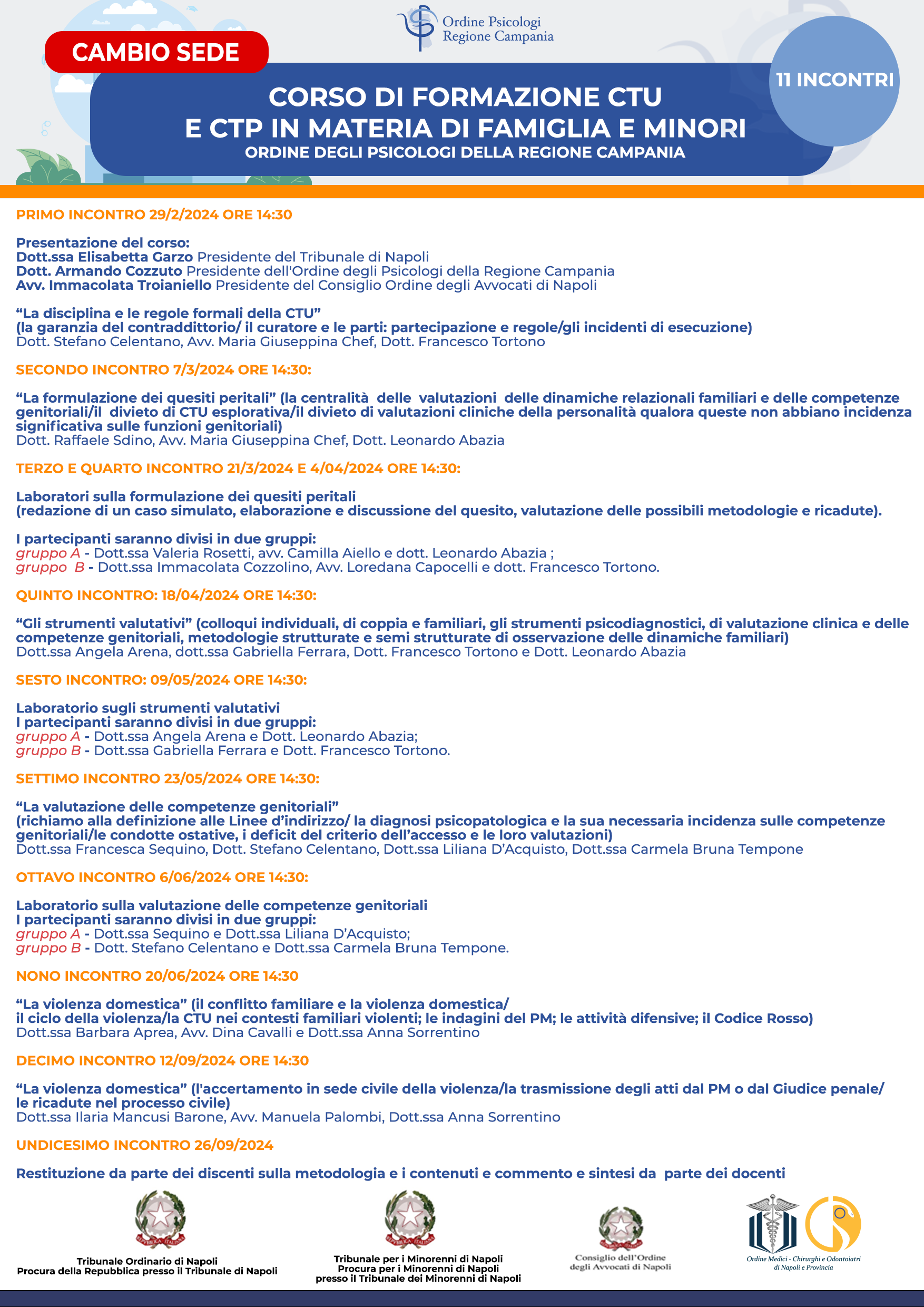 Corso CTU e CTP in materia di famiglia e minori: cambio sede
