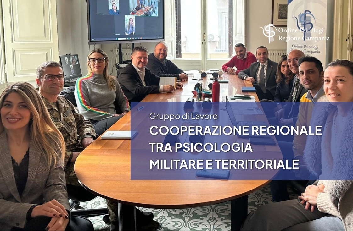 Si è lunedì 09 febbraio 2026 il Gruppo di Lavoro “𝗖𝗼𝗼𝗽𝗲𝗿𝗮𝘇𝗶𝗼𝗻𝗲 𝗥𝗲𝗴𝗶𝗼𝗻𝗮𝗹𝗲 𝘁𝗿𝗮 𝗣𝘀𝗶𝗰𝗼𝗹𝗼𝗴𝗶𝗮 𝗠𝗶𝗹𝗶𝘁𝗮𝗿𝗲 𝗲 𝗧𝗲𝗿𝗿𝗶𝘁𝗼𝗿𝗶𝗮𝗹𝗲” dell’Ordine degli Psicologi della Regione Campania.