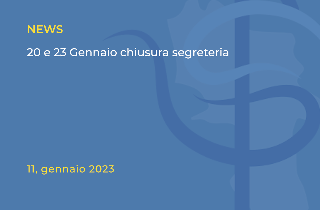 L’Ordine comunica che gli uffici di segreteria saranno chiusi il 20 e il 23 gennaio 2023 per aggiornamenti dei sistemi informatici.