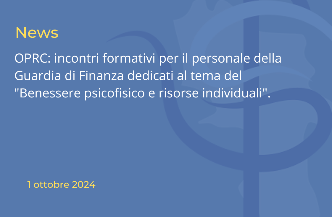OPRC: incontri formativi per il personale della Guardia di Finanza dedicati al tema del “Benessere psicofisico e risorse individuali”.