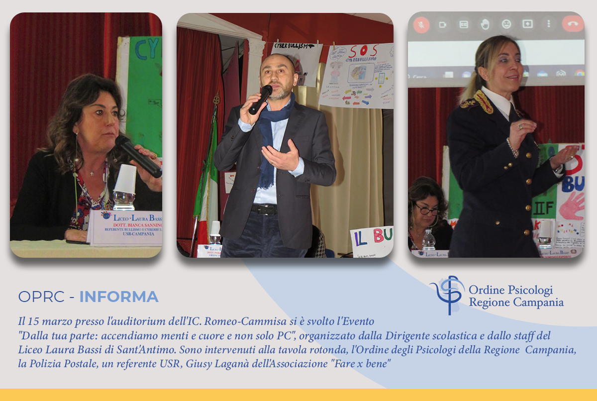 Nel corso dell’evento si è svolta una tavola rotonda a cui hanno preso parte: il Dott. Pasquale Borriello, membro del Gruppo di Lavoro per la ricerca e l’intervento in materia di psicologia scolastica dell’Ordine degli Psicologi della Regione Campania, la Polizia Postale, l’Ufficio Scolastico Regionale e l’Associazione “Fare x Bene”