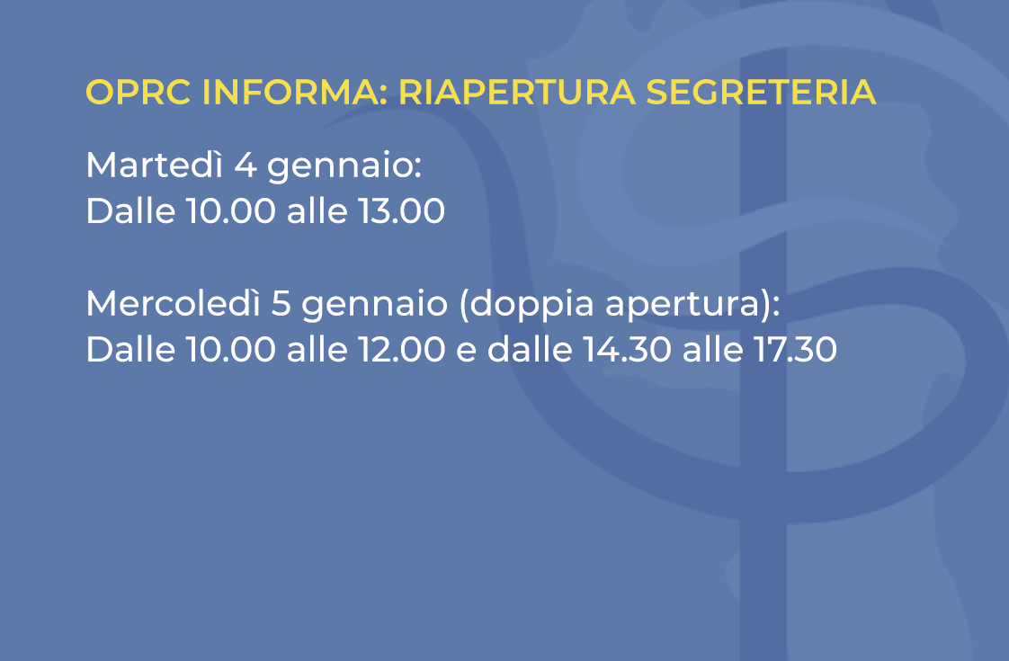OPRC INFORMA: RIAPERTURA SEGRETERIA