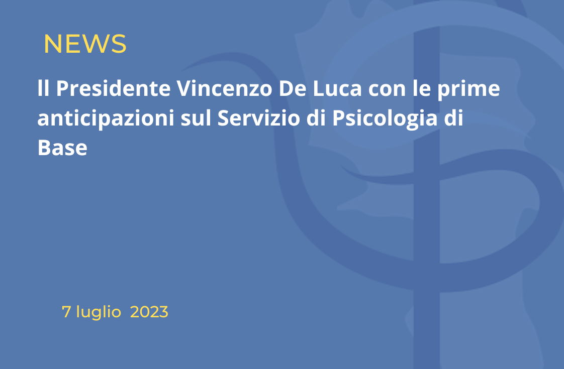 Il Presidente Vincenzo De Luca con le prime anticipazioni sul Servizio di Psicologia di Base, il primo attivo in Italia, che verrà presentato martedì 11 luglio alle 9.30 presso l’Auditorium sito al Centro Direzionale, Isola C3.