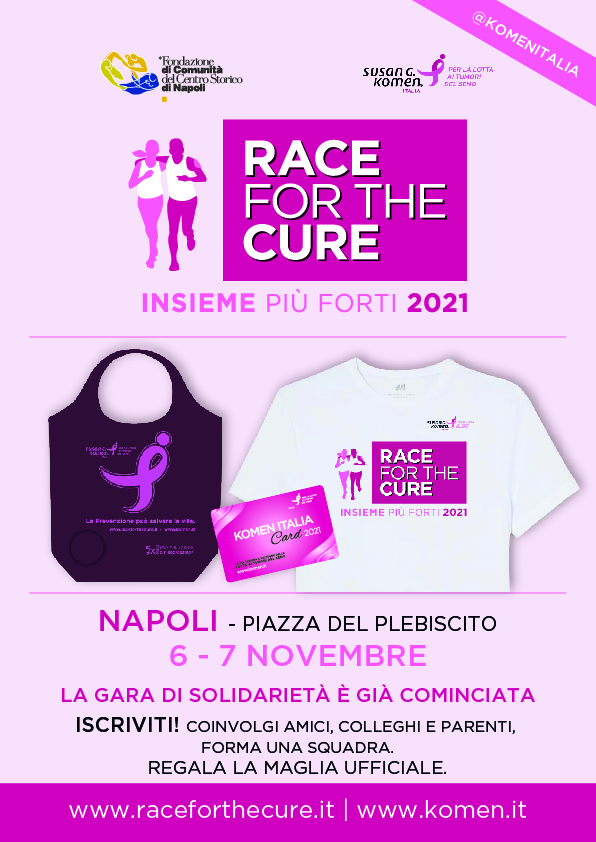 Condividiamo l’iniziativa del Comitato Regionale Campania “Susan G. Komen Italia” Race for the Cure 2021 che si svolgerà a Napoli il 6 e 7 novembre 2021