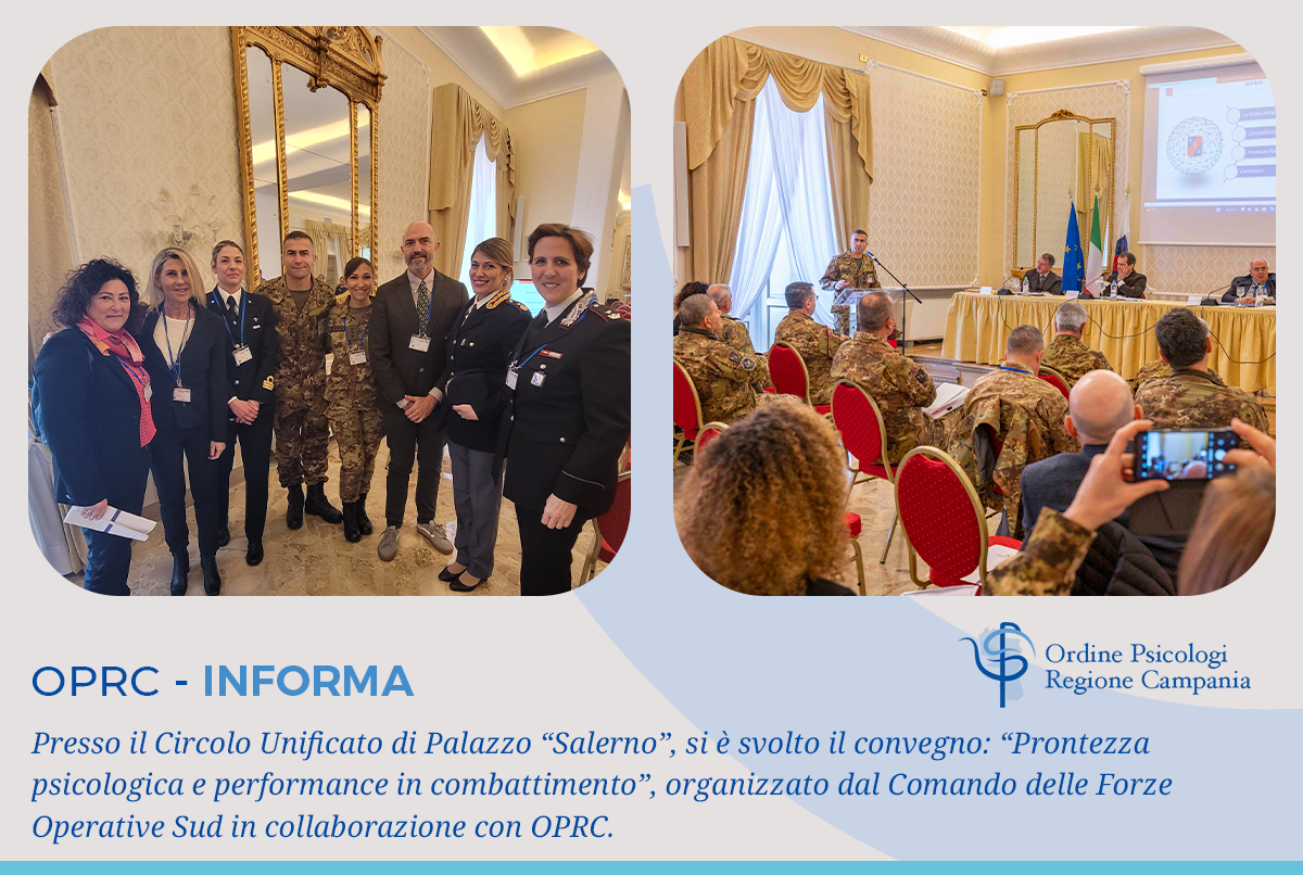 Si è svolto nei giorni scorsi a Napoli, presso il Circolo Unificato di Palazzo “Salerno”, il workshop organizzato dal Comando delle Forze Operative Sud, in collaborazione con l’Ordine degli Psicologi della Campania.