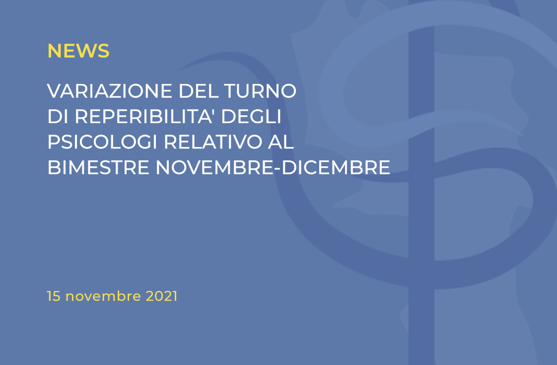 VARIAZIONE DEL TURNO DI REPERIBILITA’ DEGLI PSICOLOGI RELATIVO AL BIMESTRE NOVEMBRE-DICEMBRE