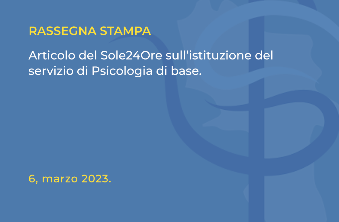 Articolo del quotidiano Sole24Ore sull’istituzione del servizio di Psicologia di base.