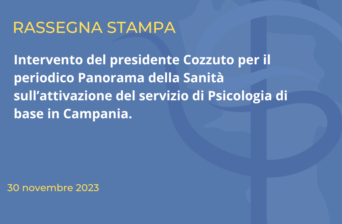 Intervento del presidente Cozzuto per il periodico Panorama della Sanità sull’attivazione del servizio di Psicologia di base in Campania.