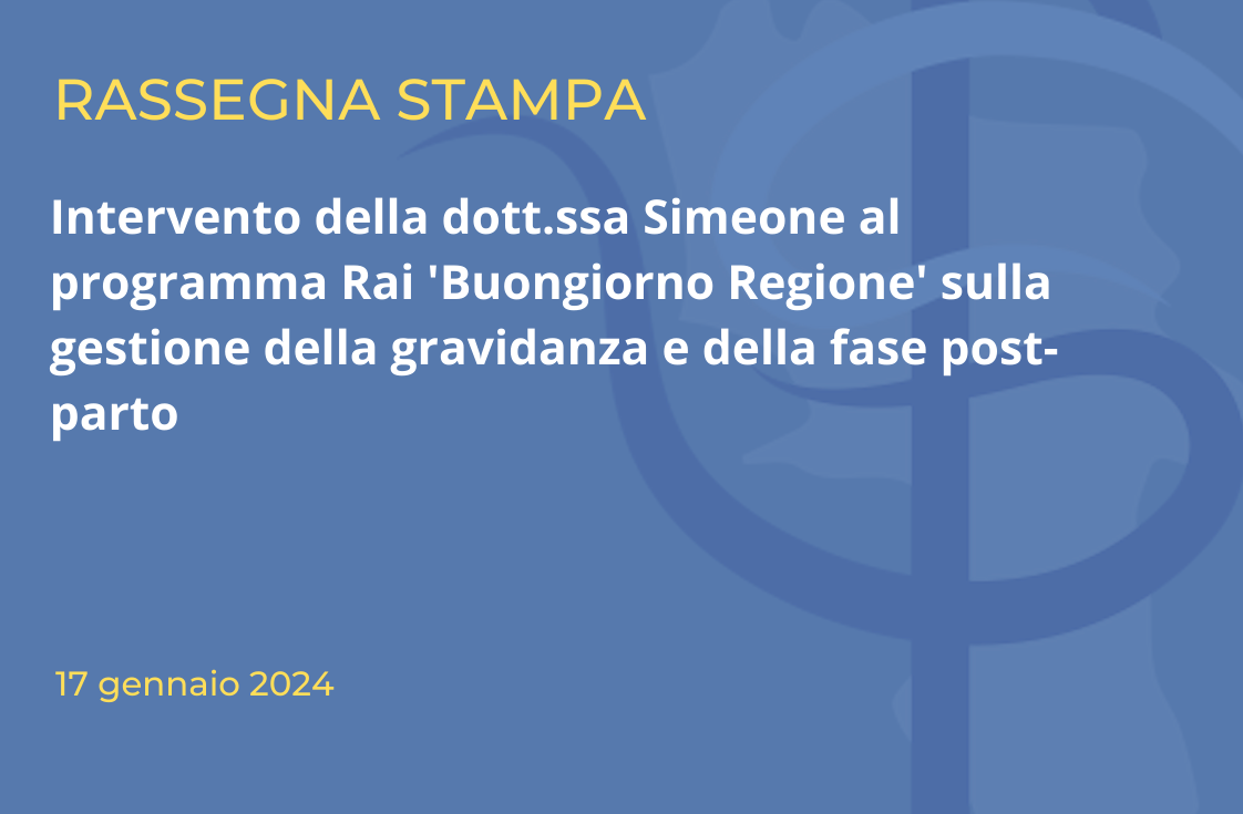 Intervento della dott.ssa Simeone al programma Rai ‘Buongiorno Regione’ sulla gestione della gravidanza e della fase post-parto.