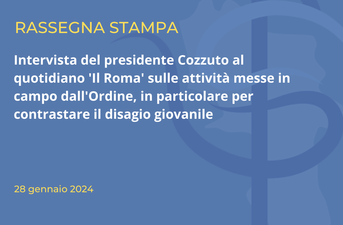 Intervista del presidente Cozzuto al quotidiano ‘Il Roma’ sulle attività messe in campo dall’Ordine, in particolare per contrastare il disagio giovanile.