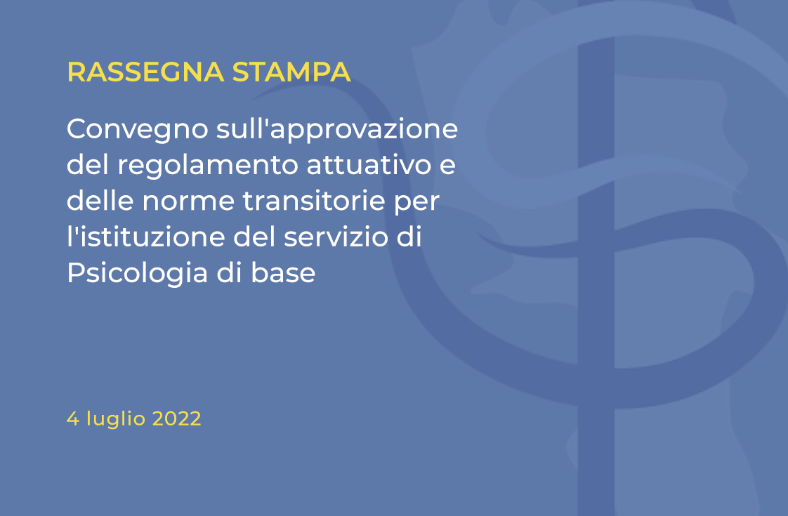 Rassegna Stampa: Convegno sull’approvazione del regolamento attuativo e delle norme transitorie per l’istituzione del servizio di Psicologia di base