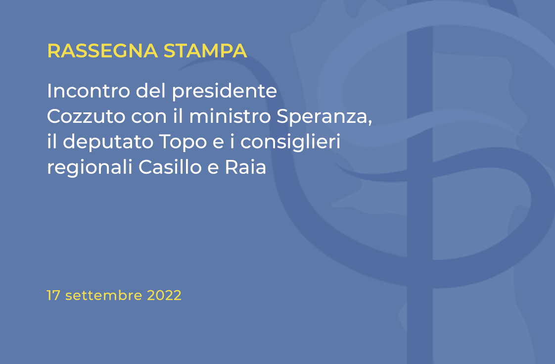 Rassegna Stampa: incontro del presidente Cozzuto con il ministro Speranza, il deputato Topo e i consiglieri regionali Casillo e Raia