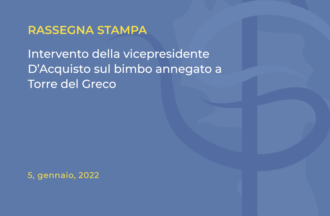 Rassegna stampa: Intervento della vicepresidente D’Acquisto sul bimbo annegato a Torre del Greco