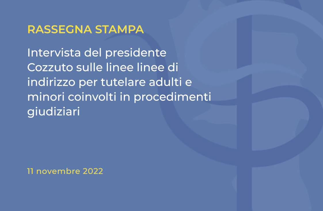 Rassegna Stampa: intervista del presidente Cozzuto sulle linee linee di indirizzo per tutelare adulti e minori coinvolti in procedimenti giudiziari