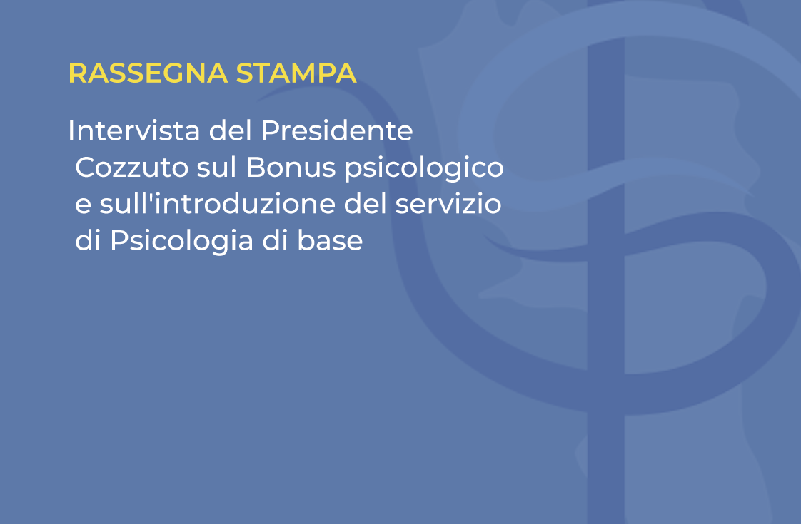 Intervista del Presidente Cozzuto sul Bonus psicologico e sull’introduzione del servizio di Psicologia di base